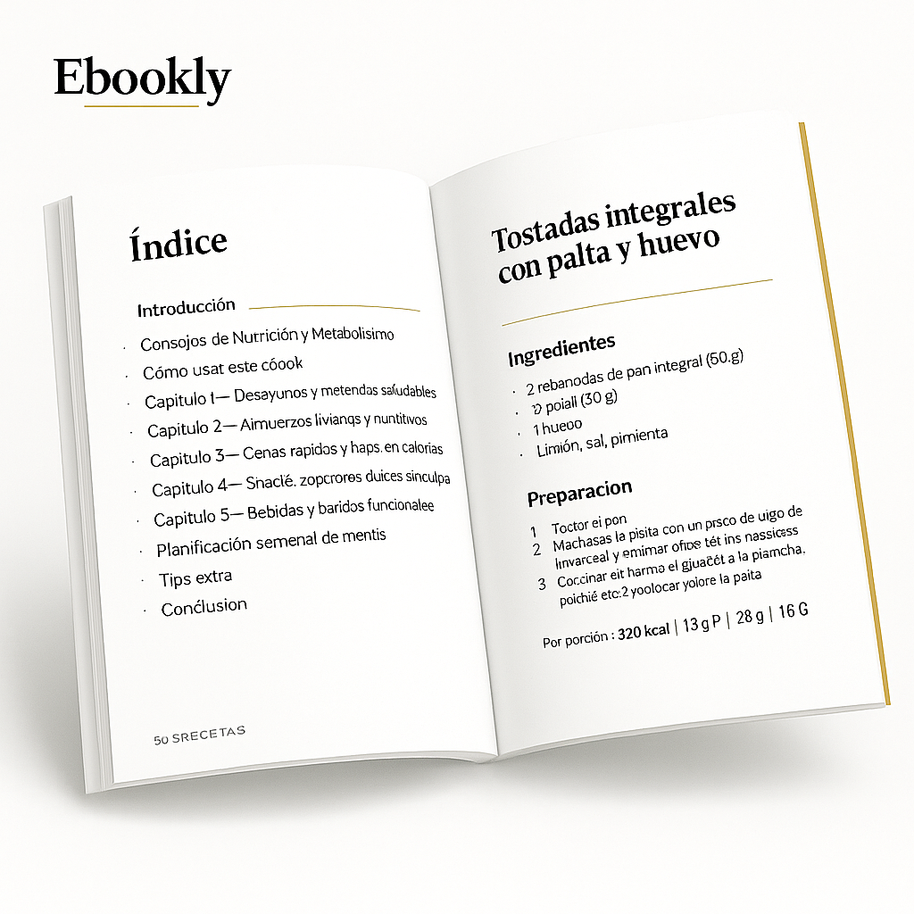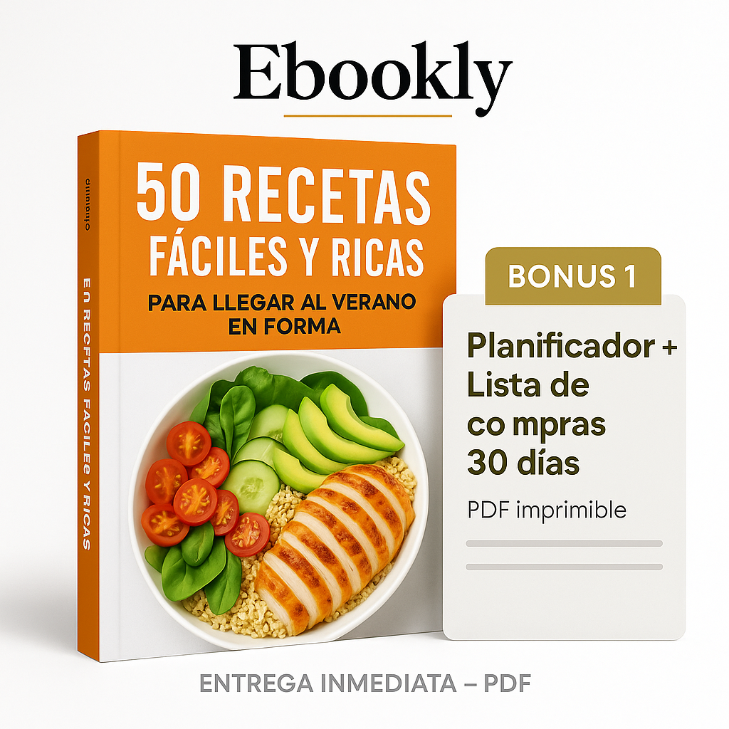 Con +50 recetas saludables, simples y riquísimas vas a comer mejor, sentirte liviano y llegar al verano con energía. Además, reforzá el plan con el bono Planificador + Lista de compras (30 días) incluido por tiempo limitado.